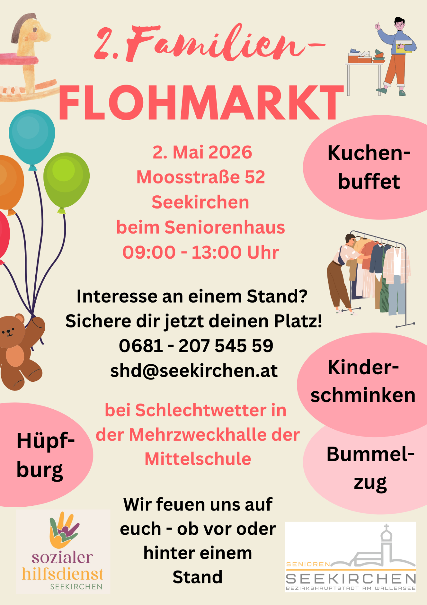 Besuchen Sie unseren Familien-Flohmarkt, bei dem die Standmiete von nur 20,- Euro einem guten Zweck dient! Der Erlös Ihrer Verkäufe gehört Ihnen.